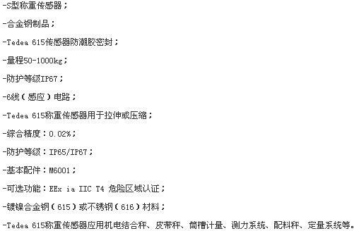 美國威世特迪亞vishay tedea 615-200kg稱重傳感器參數: