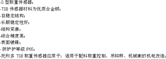 TSB-5000kg稱重傳感器材料為優質合金鋼,長期穩定性好,應用于配料稱重控制、吊鉤秤、機械衡的機電改造等。(TSB-5000kg weighing sensor material is high quality alloy steel, good long-term stability and application in the weighing control, hook scales, mechanical and electrical transformation of mechanical equilibrium, etc.)