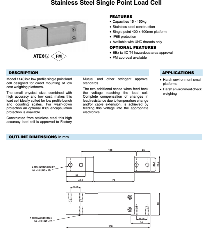 【廣州蘭瑟】美國特迪亞Tedea 1140-100kg稱重傳感器,年底走量,原裝正品,特價清倉,歡迎廣大新老客戶快來選購!!!