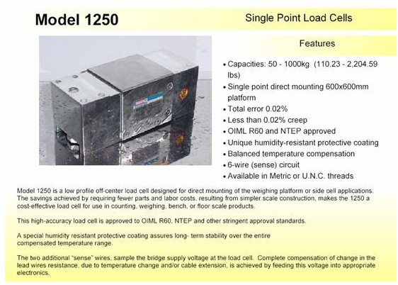 美國(guó)Tedea-Huntleigh 1250-1000kg稱重傳感器主要特征: