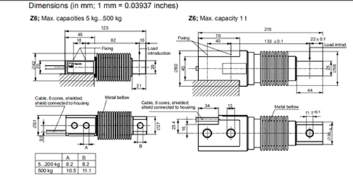 Z6 稱重傳感器有多種不同的型號 (Z6FD1, Z6FC3, Z6FC3MI, Z6FC4, Z6FC6) 并有不同的精度等級.