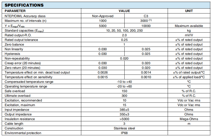 靈敏度:2.0mV/V 蠕變:±0.02 %F·S/30min
