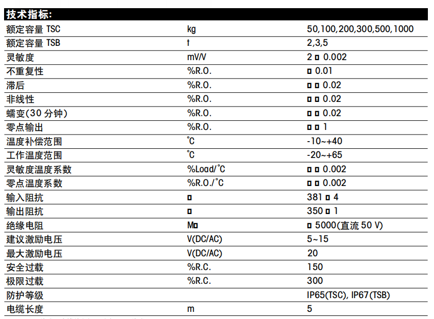 8、稱重傳感器的參數(shù)指標(中英文對照)