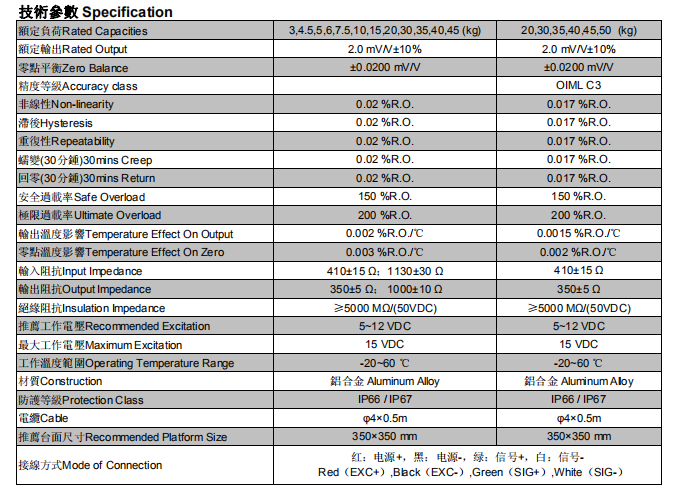 靈敏度溫漂 0.003% F.S./℃