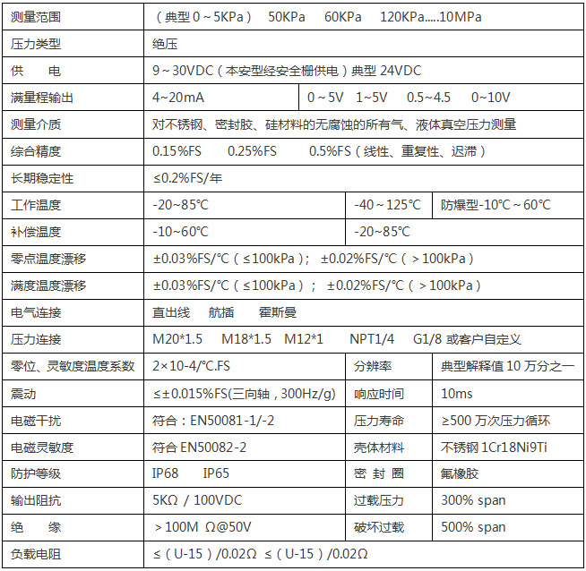 系列產(chǎn)品采用了德國(guó)HELM壓力傳感器硅疊硅技術(shù)、高精度集成壓阻力敏元件、利用國(guó)際先進(jìn)的微型化制作與封裝工藝,進(jìn)行了