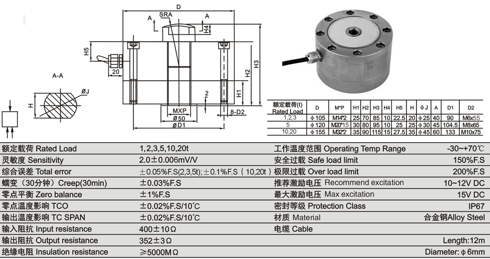 9、QSNB-A稱重傳感器,適用于鋼包秤、天車秤。型號有:QSNB-10t,QSNB-15t,QSNB-20t,QSNB-25t,QSNB-30t。