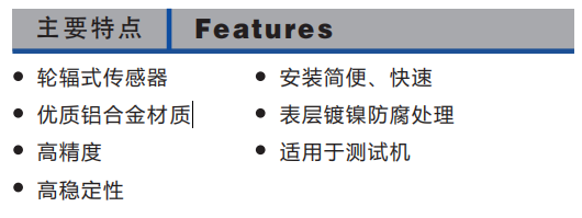 輪輻式傳感器;推薦合金鋼材質;高精度;高穩定性;安裝簡便、快速;表層鍍鎳防腐處理;適用于測試機