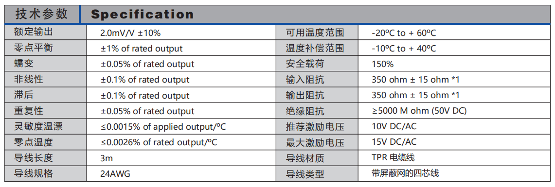 7靈敏度溫漂 ≤0.0015% of applied output/℃
