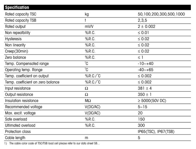 瑞士梅特勒托利多TSB-5000傳感器基本特性: