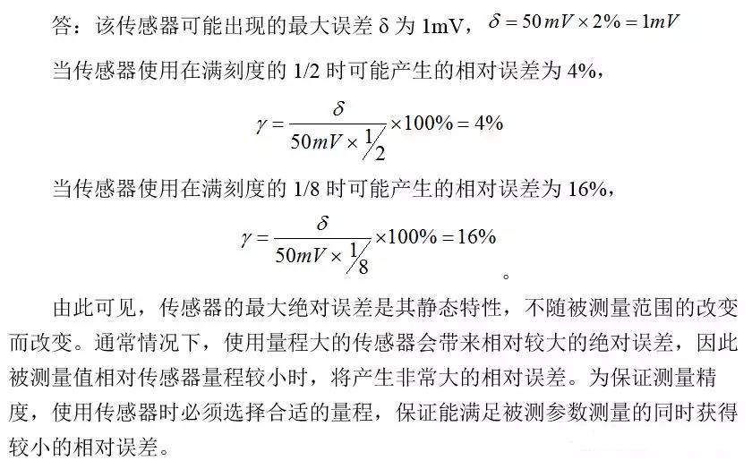 和1/8時計算可能產(chǎn)生的相對誤差。并由此說明使用傳感器選擇適當(dāng)量程的重要性。