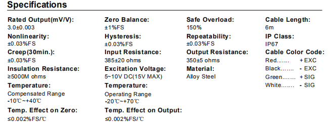 稱重傳感器技術參數