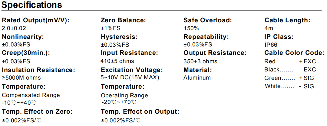 SMT-200N/SMT-300N稱重/測力傳感器技術(shù)參數(shù)