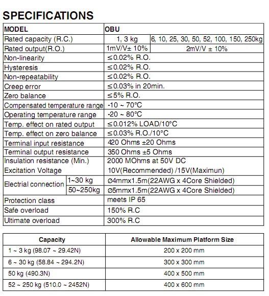 韓國BONGSHIN OBU稱重傳感器主要特性: