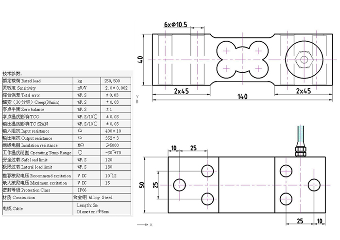 美國SUNCELLS ILKJB250-500kg稱重傳感器參數尺寸: