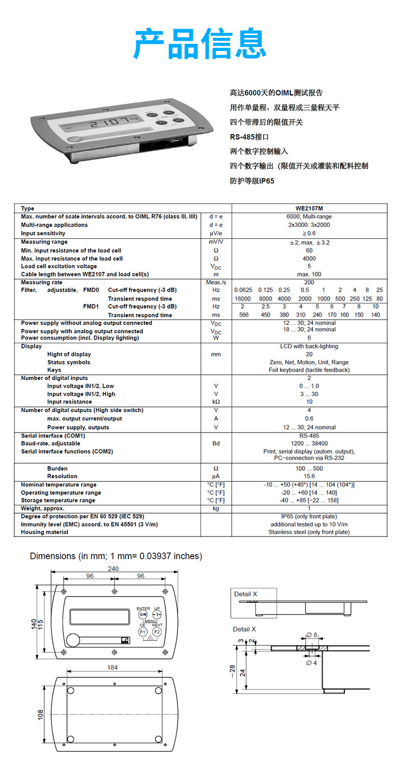 德國(guó)HBM WE2107M稱重儀表產(chǎn)品描述