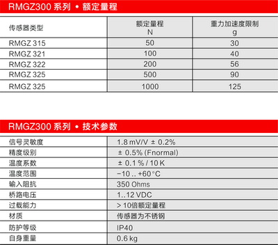 瑞士FMS RMGZ300張力傳感器技術(shù)參數(shù):