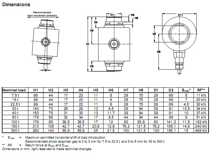 量程:7.5 t直至300 t