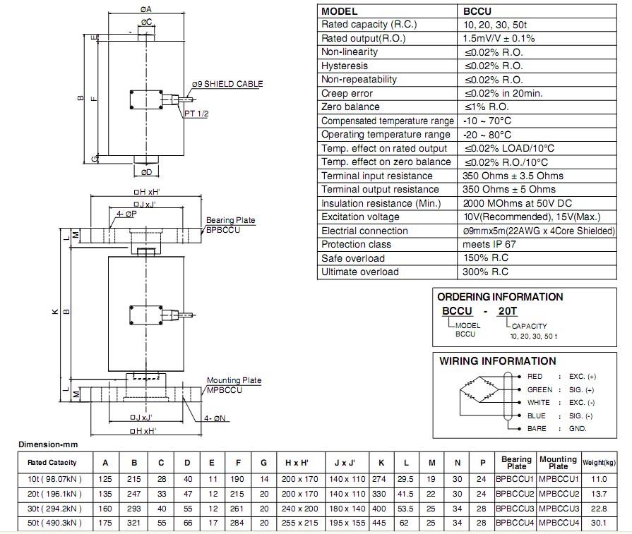 BCCU系列量程:BCCU-10t稱重傳感器,BCCU-20t稱重傳感器,BCCU-30t稱重傳感器,BCCU-50t稱重傳感器