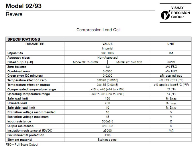 美國Revere 92-50KLBS稱重傳感器參數(shù)
