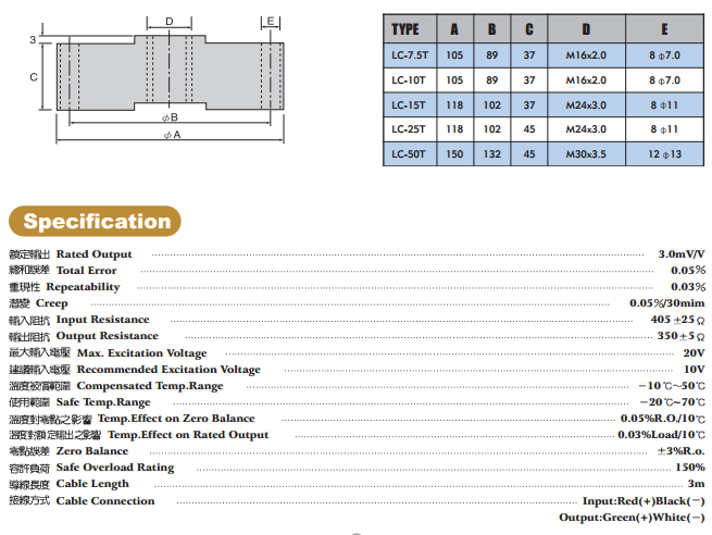 本L型荷重元( L Load cell)系最常用的力量量測(cè)荷重元,由於大面積穩(wěn)固的底座以及極低的高度,並配上高敏度剪 力感應(yīng)結(jié)構(gòu)及完全密封保護(hù),使荷重感應(yīng)達(dá)到最高之精度與敏感度,因此特別適用於精確重量測(cè)、力量測(cè)試、地磅及自動(dòng)控制上,具以下之特點(diǎn): 臺(tái)灣JIHSENSE荷重元L系列(LOADCELL)型號(hào) Type: