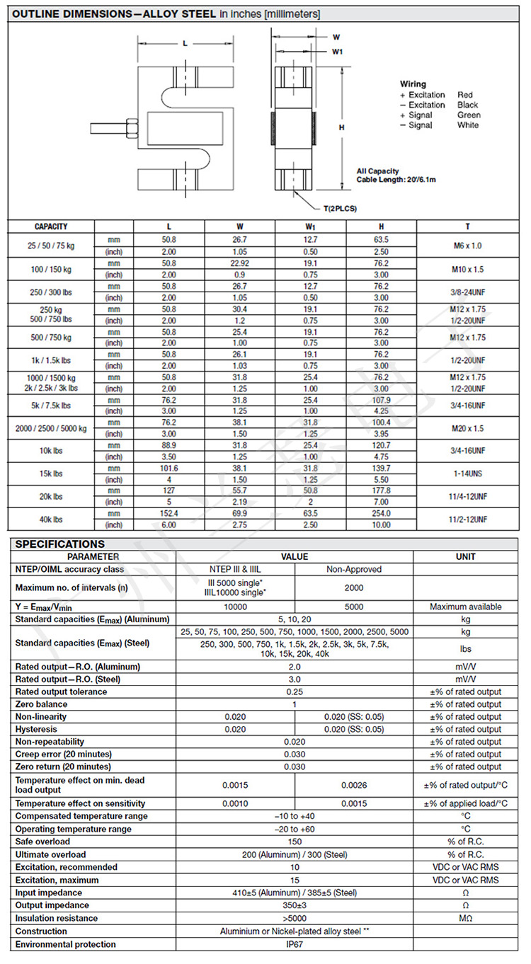 證書認證:NTEP Class III 5000S, lllL10000 認證 250lb-20Klb