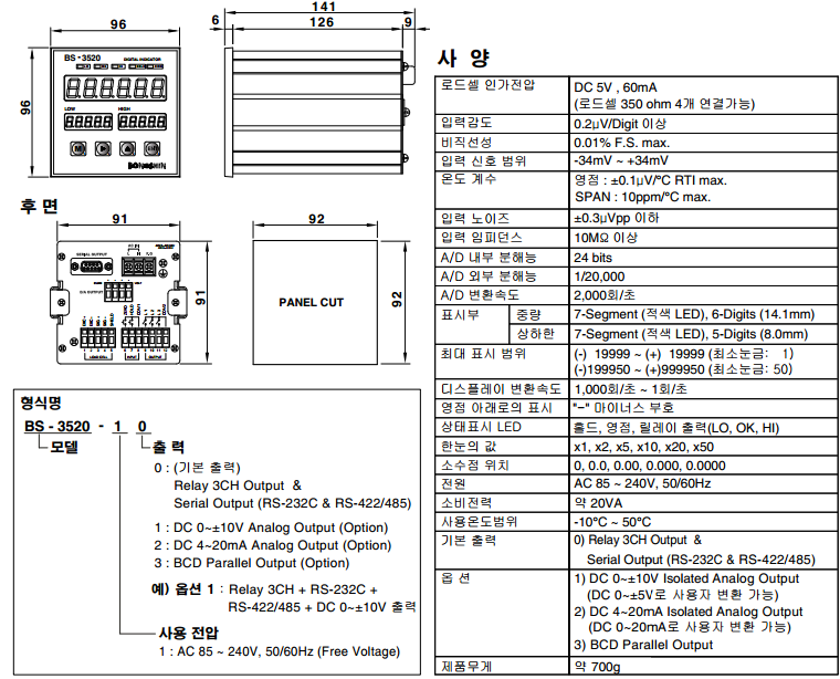 韓國(guó)Bongshin BS-3520稱重儀表技術(shù)指標(biāo)