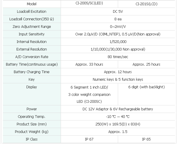 韓國(guó)CAS CI-200S稱重儀表技術(shù)參數(shù):