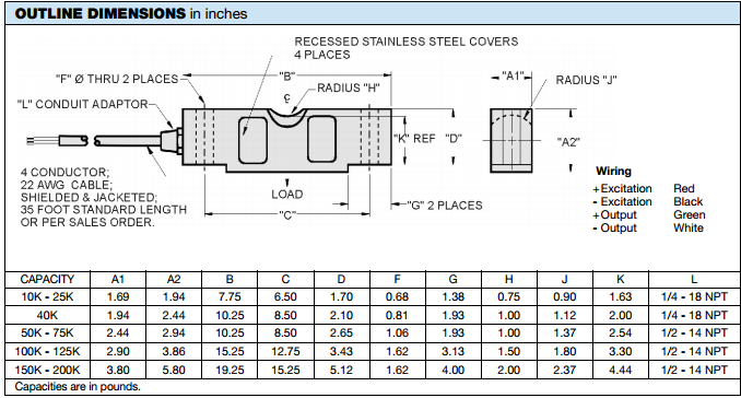 65058美國STS,SENSORTRONICS 65058稱重傳感器產品技術參數和尺寸: