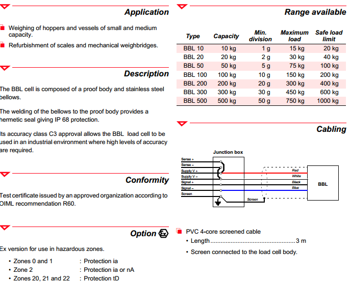 關于BBL傳感器更多詳細資料請點擊:法國PRECIA-MOLEN獲取FA3000i稱重傳感器相關產品!!