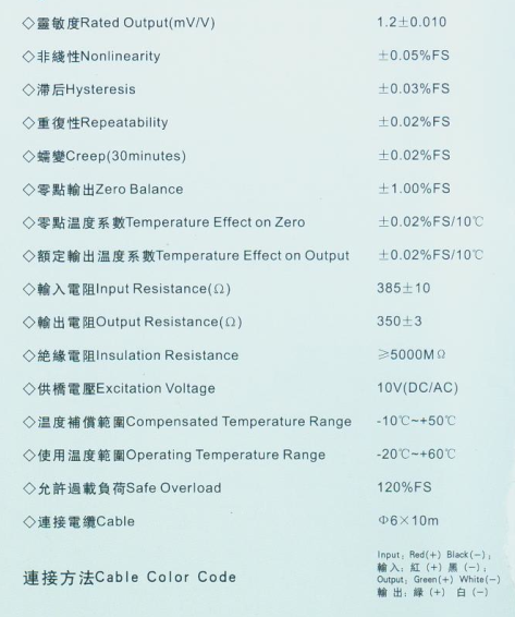 美國AC GX-5-5T稱重傳感器技術(shù)參數(shù):