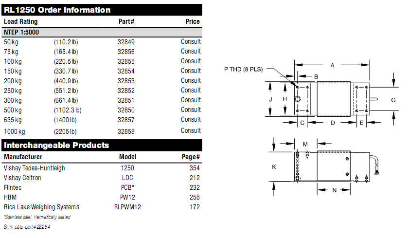 RICE LAKE RL1250稱重傳感器高容量,關中心裝載稱重傳感器準確地重負載從50到1000公斤(110.2至2204.6磅的)。保持長期的穩定性和耐用性。
