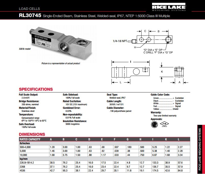 RL30745: RL30745-500lb RL30745-1.25Klb RL30745-2.5klb RL30745-5klb RL30745-10Klb;