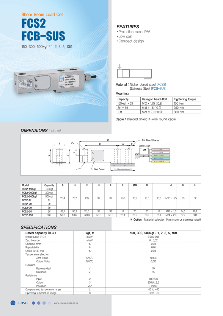 韓國Fine稱重傳感器FCS2所有型號:
