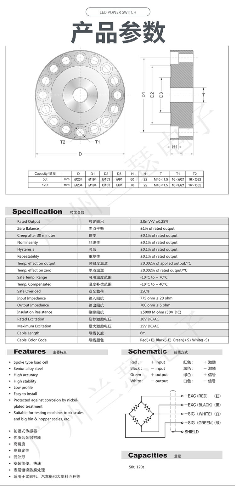 | DBSL-TJ-50T傳感器,Transcell DBSL-TJ-120T稱重傳感器 |