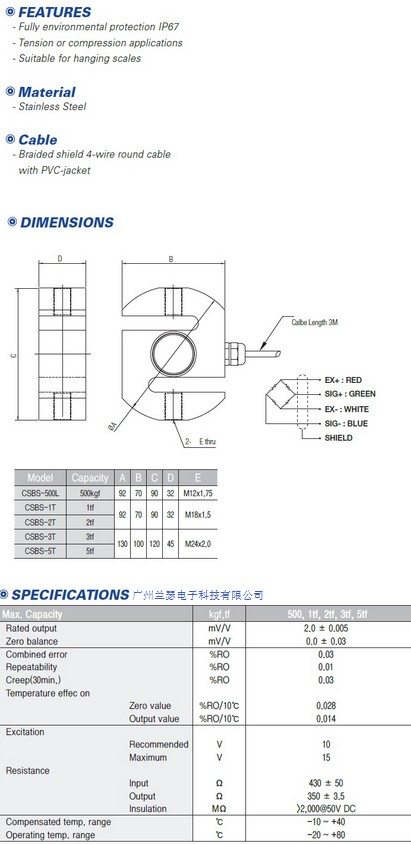 韓國CURIOSITY CSBS拉壓力稱重傳感器采用合金鋼,不銹鋼材質膠密封防護處理,安裝容易,使用方便,適用于吊秤,配料秤,機改秤等電子測力稱重系統.額定載荷50kgf,100kgf,150kgf,200kgf,300kgf,500kgf,1tf,2tf,3tf,5tf,10tf。