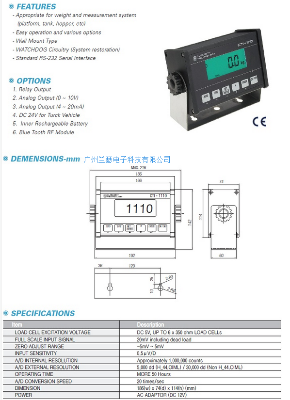 韓國CURIOSITY CTI-1110稱重顯示控制儀表產品參數尺寸