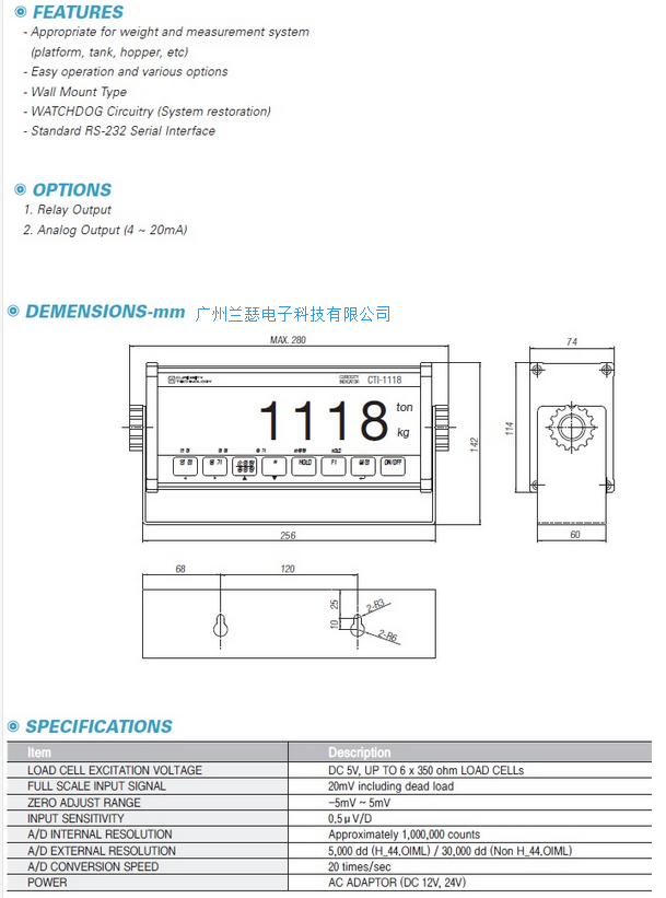 韓國CURIOSITY CTI-1118稱重顯示控制儀表產(chǎn)品參數(shù)尺寸