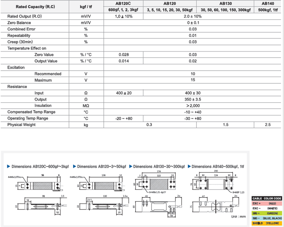 產品型號:AB120-5kgf,AB120-10kgf,AB120-15kgf,AB120-30kgf,AB120-50kgf,AB120-100kgf,AB120-150kgf,AB120-300kgf。