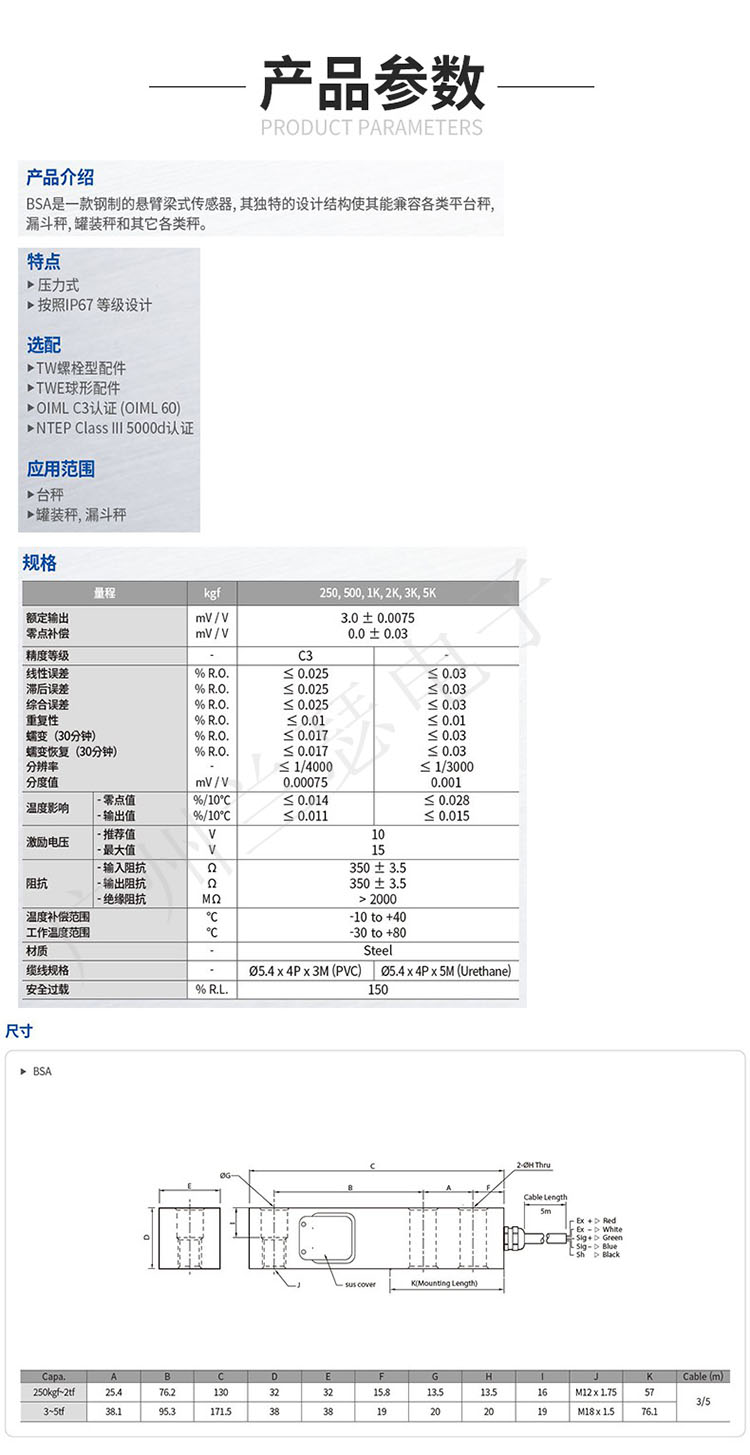 韓國凱士CAS BSA-1T稱重傳感器參數