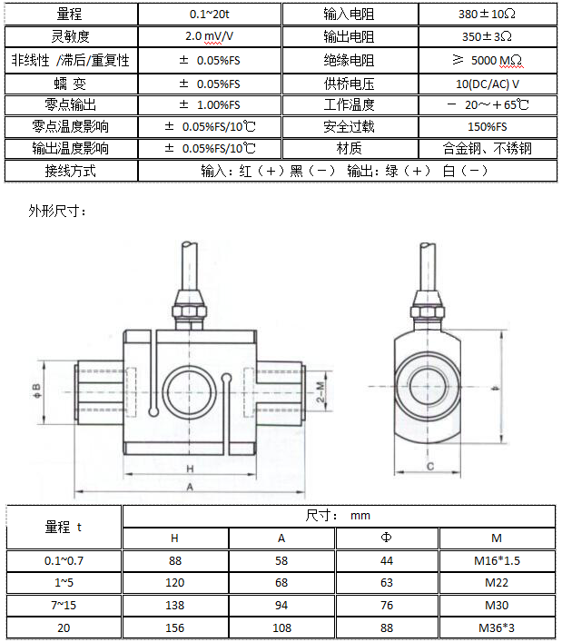 美國AC ET-B稱重傳感器技術指標:
