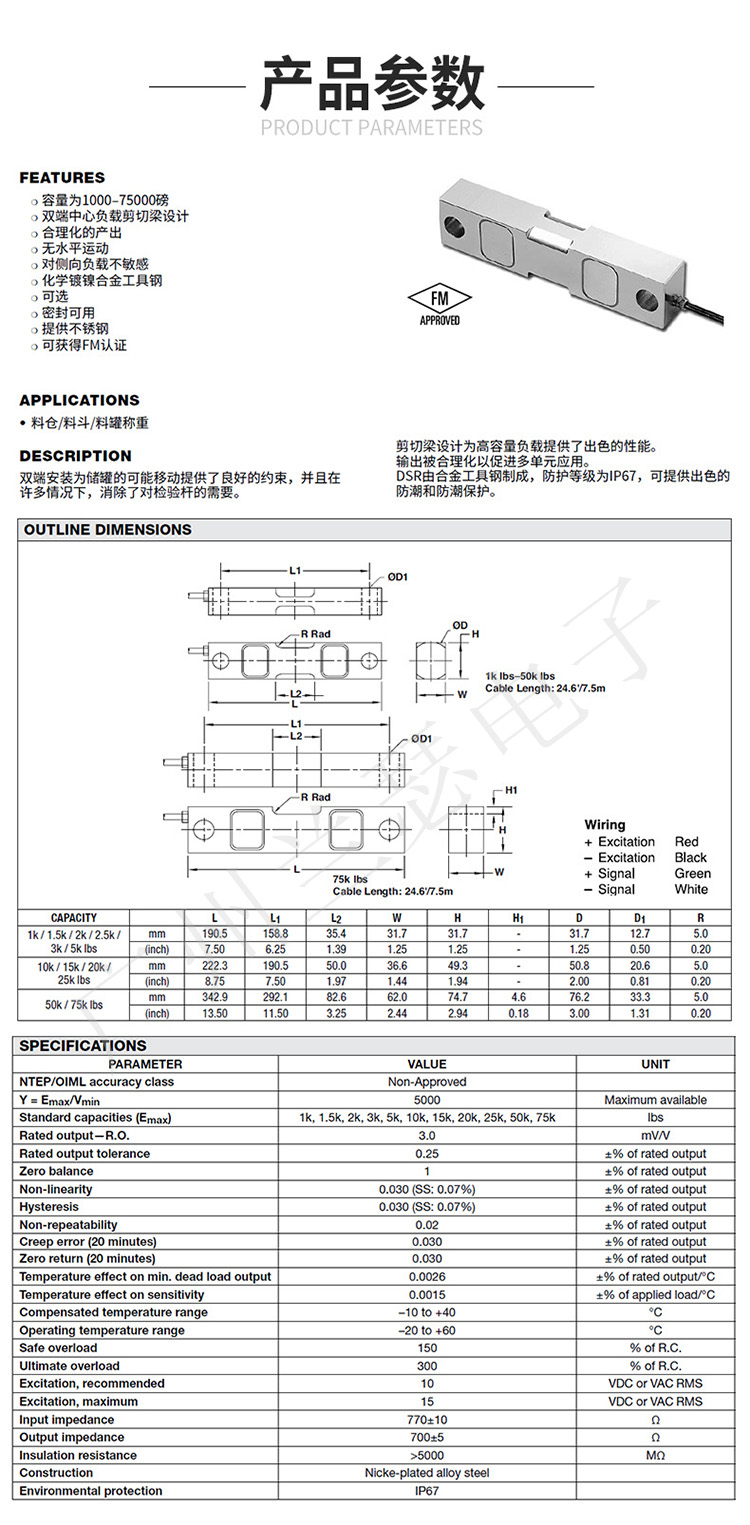 美國Celtron DSR-50KLB(DSR-22.7T)稱重傳感器產品參數: