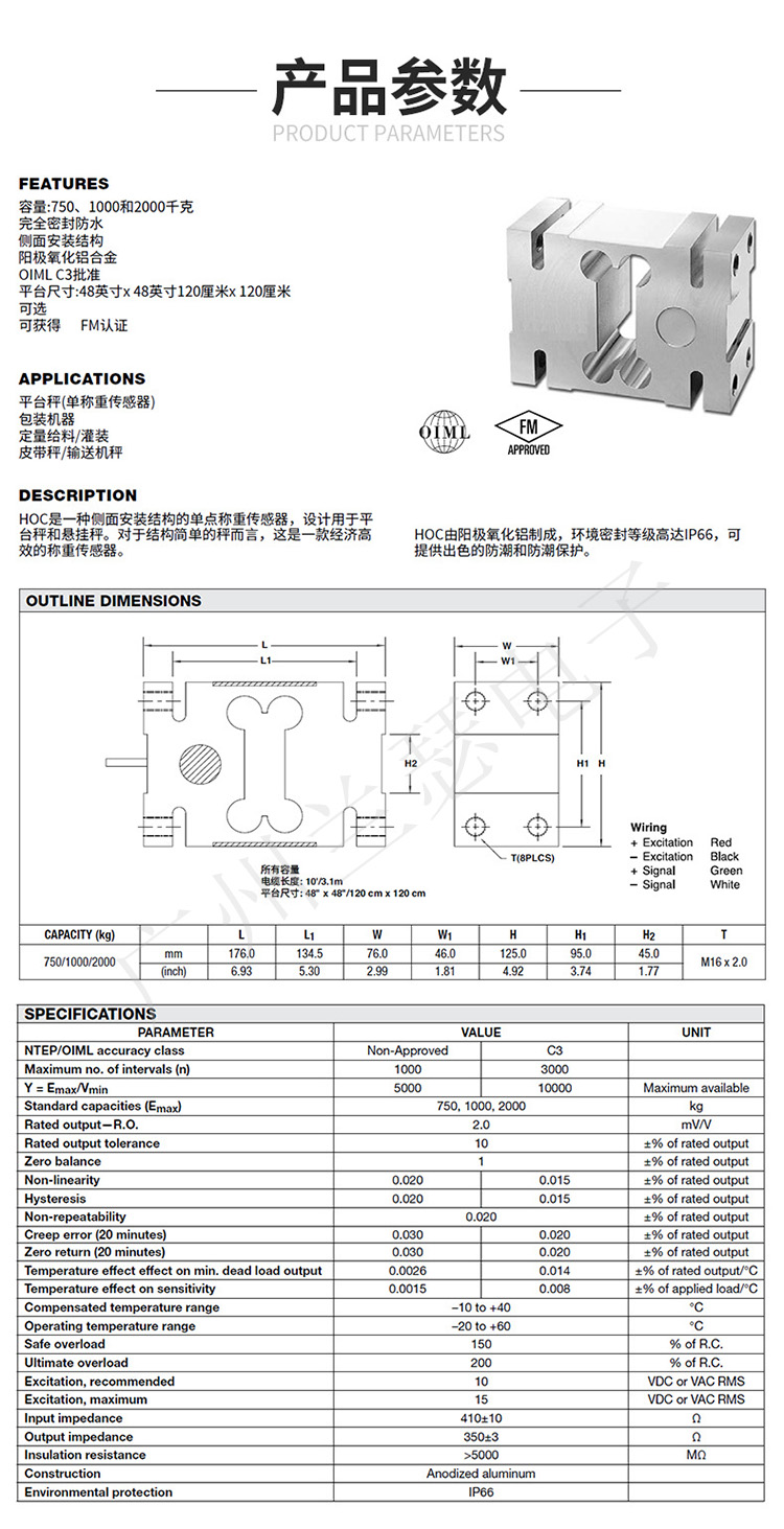 美國(guó)Celtron HOC-2t稱重傳感器產(chǎn)品參數(shù):