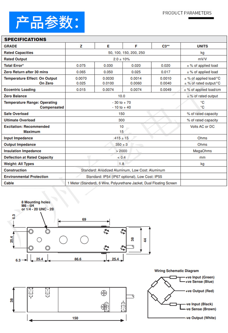 美國Tedea 1241-100kg稱重傳感器產(chǎn)品參數(shù):