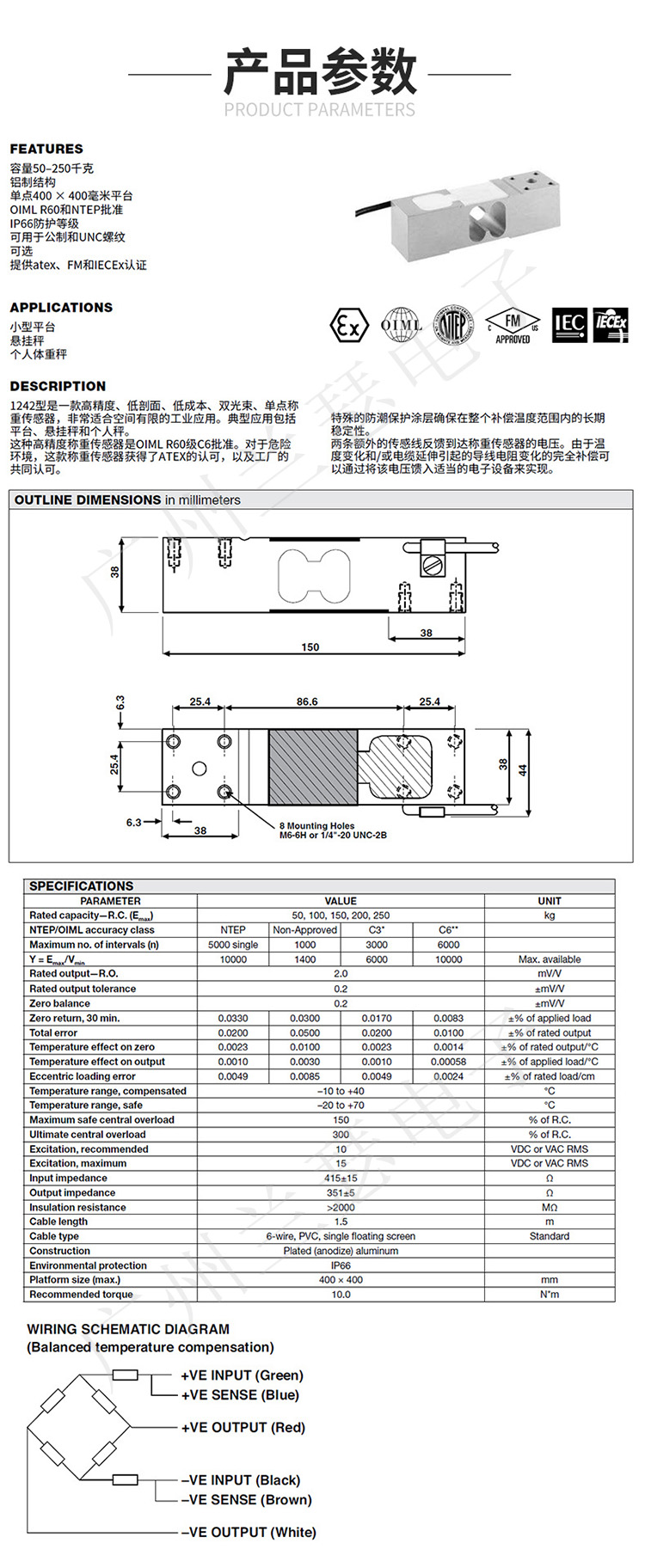 美國(guó)Tedea 1242-50kg稱重傳感器產(chǎn)品參數(shù):
