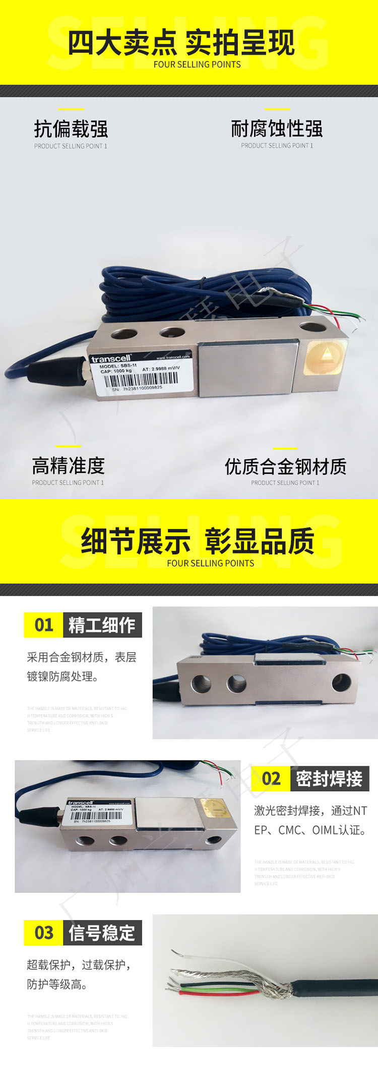 美國Transcell SBS-1T稱重傳感器產(chǎn)品實拍圖: