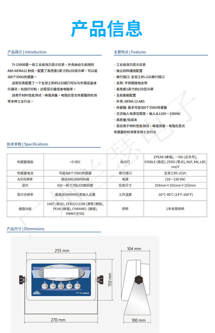 TI-1500B是一種工業(yè)級測力顯示儀表