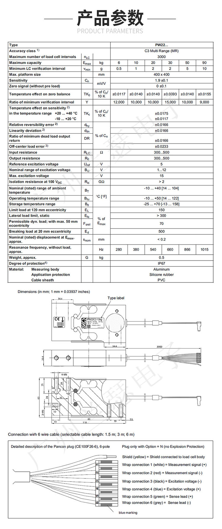 德國HBM PW22C3MR/10KG稱重傳感器產品參數: