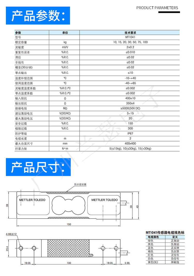 注:MT1041-10是梅特勒-托利多傳感器中容量為10kg,那么型號就是MT1041-10。以止類推得到MT1041系列的所有型號。
