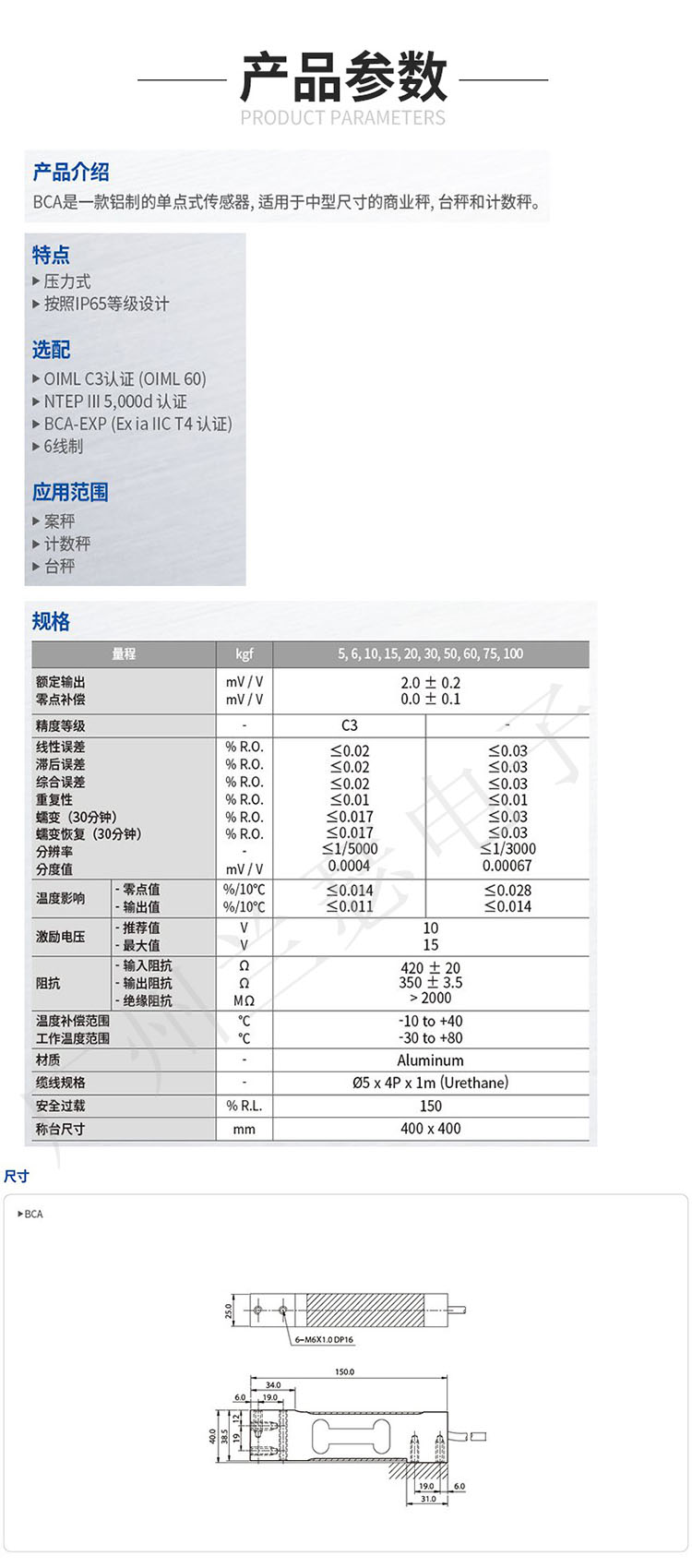 韓國CAS BCA-50L傳感器技術參數: