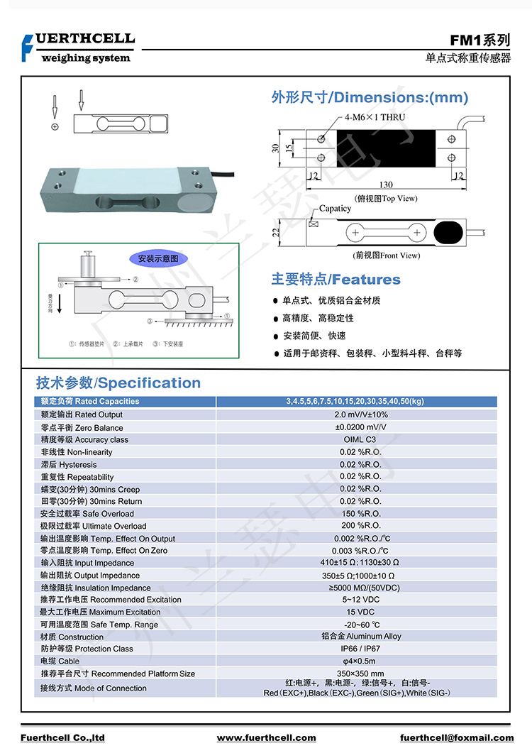 美國FUERTHCELL FM1-5KG稱重傳感器產(chǎn)品參數(shù):
